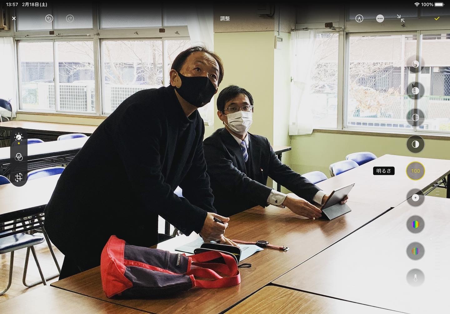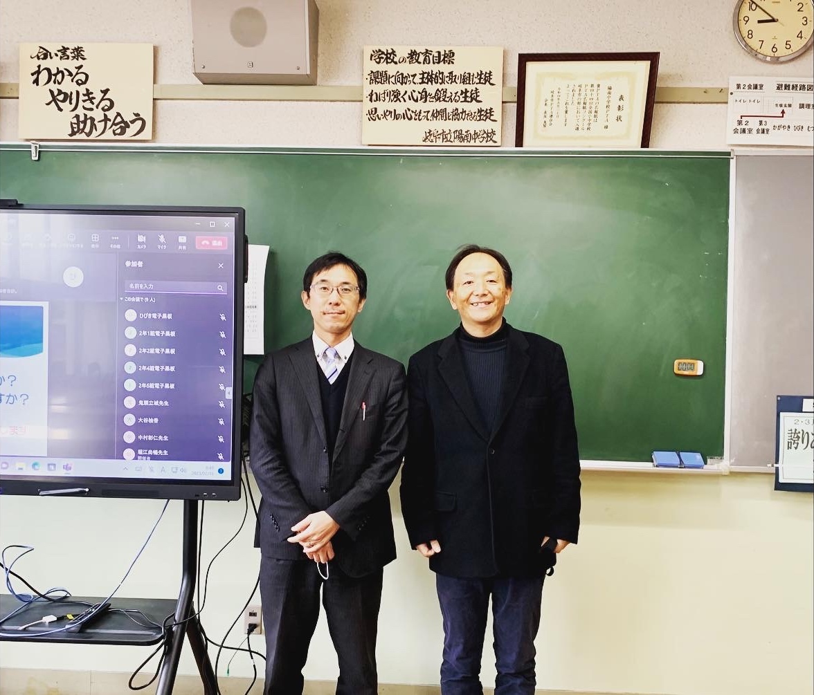 今回はクラウド会議システム「Microsoft Teams」を活用し、会議室と各教室をオンラインで繋いで実施いたしました。大型モニターを通じて全教室の反応をリアルタイムで確認し、学年主任の先生による細やかなアシストも加わることで、デジタル環境下でありながら一体感のある対話を実現。オブザーバーとして参加したNPOメンバーの吉野氏と共に、活気ある時間を共有することができました。